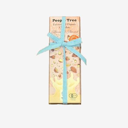 牛乳の代わりに有機アーモンド粉をつかった植物性のチョコに、砕いたアーモンドのアクセント。アーモンドの香りに包まれます。