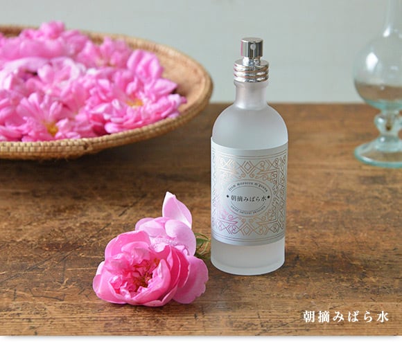 モロッコ・ムゴナの香り高い朝摘みのダマスカス・ローズをたっぷり使い、ゆっくりと丁寧に蒸留したハンドメイドのばら水です。優雅な香りとこくのある使い心地で肌を穏やかに引き締めながら潤いを与えます。優しい香りに包まれながら、贅沢なスキンケアタイムを。