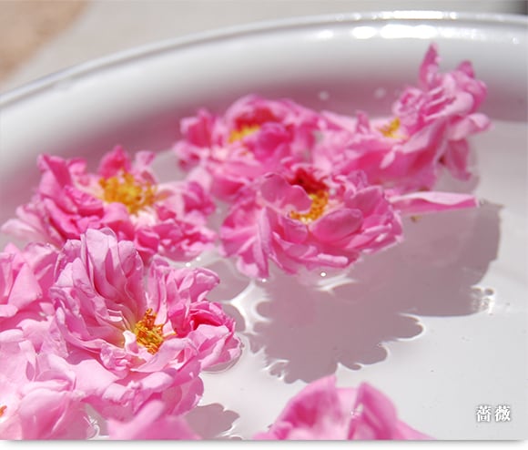 時間をかけて、薔薇本来の香りを壊さないようにゆっくりと注意深く蒸留し、花と水と火から私達のばら水はできます。含まれる成分は全て水蒸気蒸留によって、薔薇から抽出されるものです。薔薇の重さに対し、蒸留量を限定することで、香り高く、爽やかさに加えしっとりこくのある使用感を作っています。