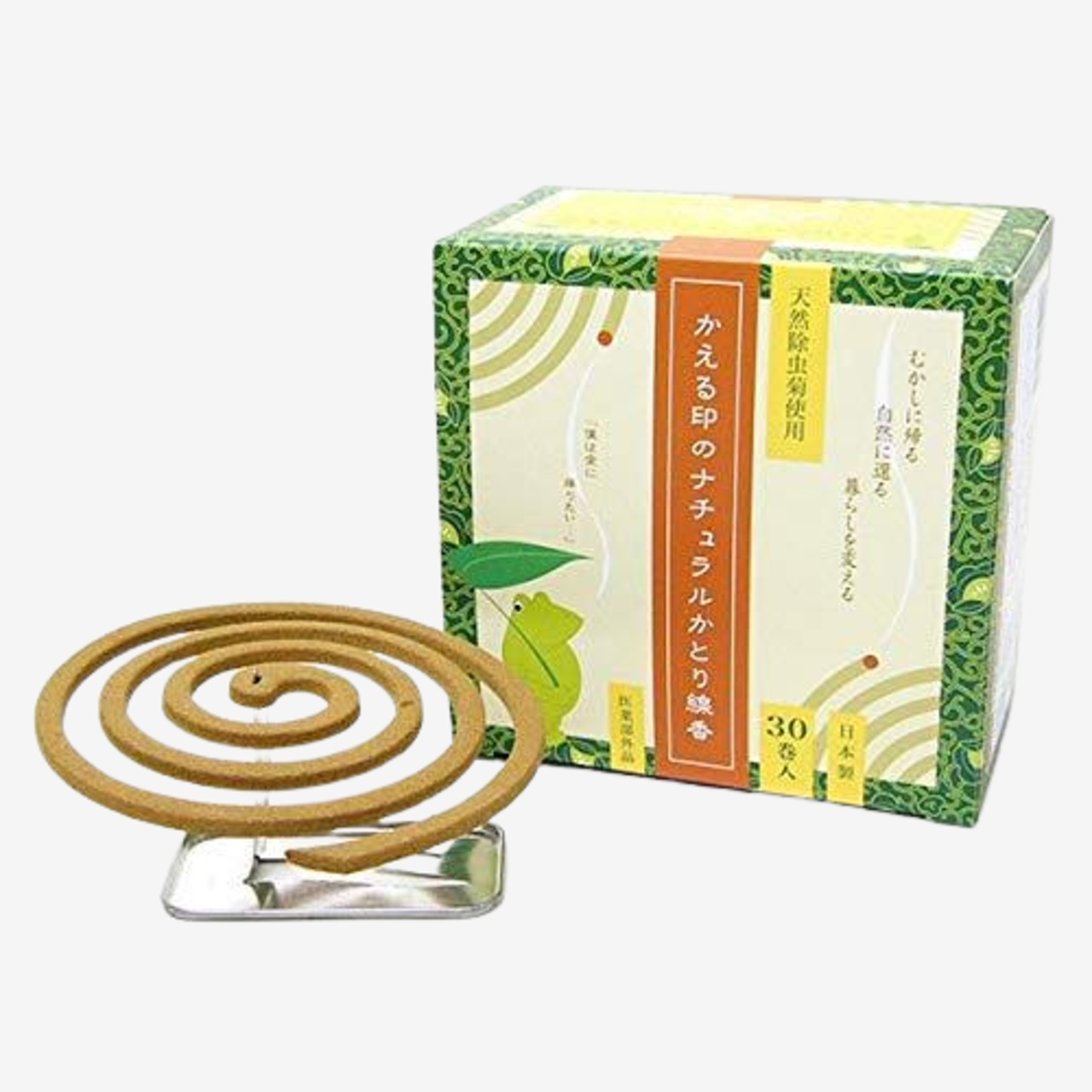 かえる印のナチュラルかとり線香は、明治時代から昭和30年代までかとり線香の主原料と して用いられた天然除虫菊を有効成分とした天然素材100%のけむりの優しいかとり線香です。 美しく花開く白菊が感じられる懐かしい香りです。