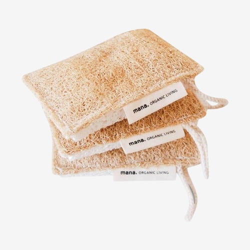 ヘチマは沖縄県で昔から食用として親しまれ、乾燥させてスポンジとしても活用されてきました。セルロースの原材料は木材パルプや補強繊維として加える綿などの天然繊維からできています。mana.のキッチンスポンジは100%天然素材から作られており、焼却しても有毒ガスが出ず、土に埋めると自然分解されて土に還ります。